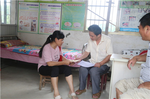 在枫树村,院领导分别前往9户结对帮扶对象家中进行走访慰问,分别将3000元慰问金送到他们手中。这9户帮扶对象是该村部扶贫攻坚工作的“建档立卡户”,均为因病致贫,院领导充分结合自身医疗资源优势,对他们进行了一对一结对帮扶。在他们家中,院领导详细了解了他们的身体状况,询问了他们各自的扶贫第一书记,扶贫主任以及扶贫政策中得到的实惠等情况。同时向他们宣教了临床医学院/附属医院健康扶贫的相关政策,鼓励他们重拾对美好生活的信心,受到关怀的村民感动不已,连连道谢。